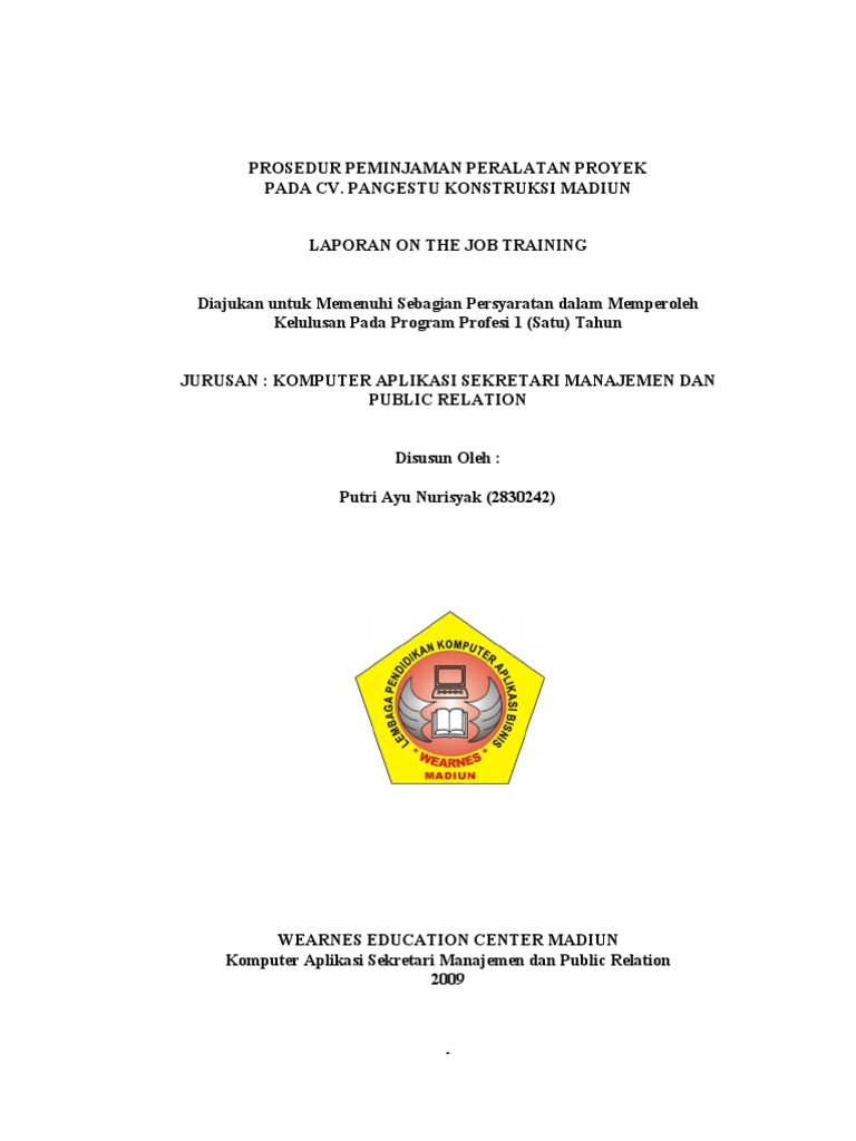 Laporan On The Job Training Di Pdf