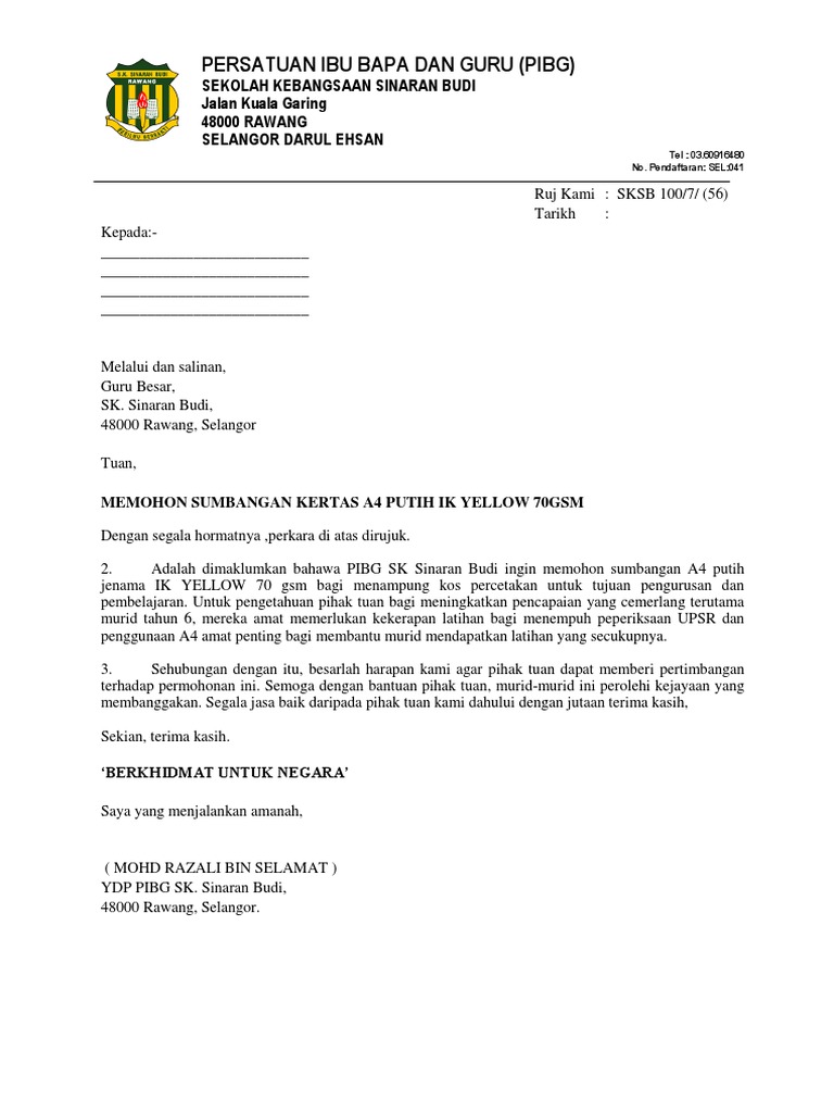 The collection that consisting of chosen picture and. Format contoh surat mohon sumbangan komputer riba terbaik 2019. PIBG mohon ibu bapa derma 1 rim kertas A4 untuk kegunaan sekolah.