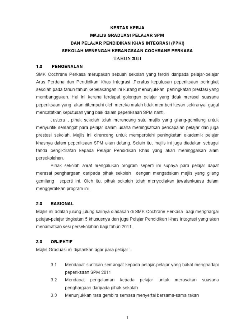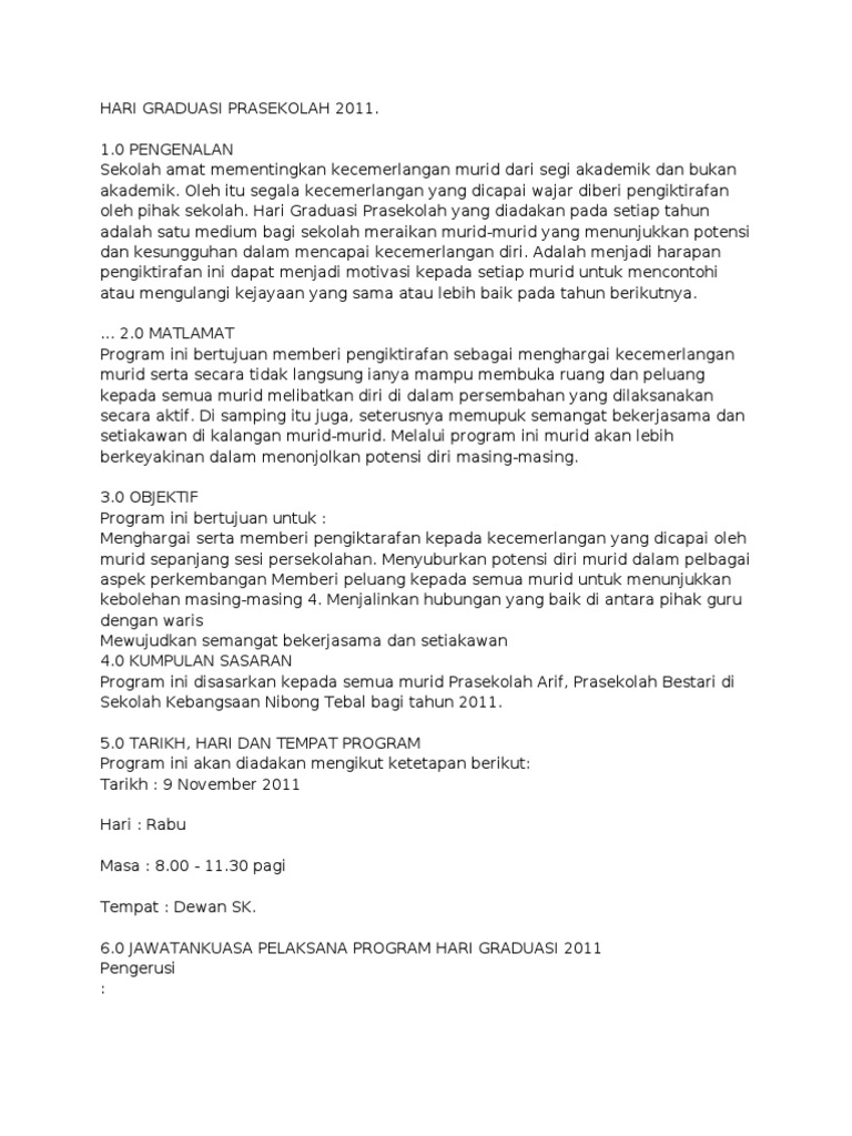 Contoh Kertas Kerja Majlis Graduasi Prasekolah