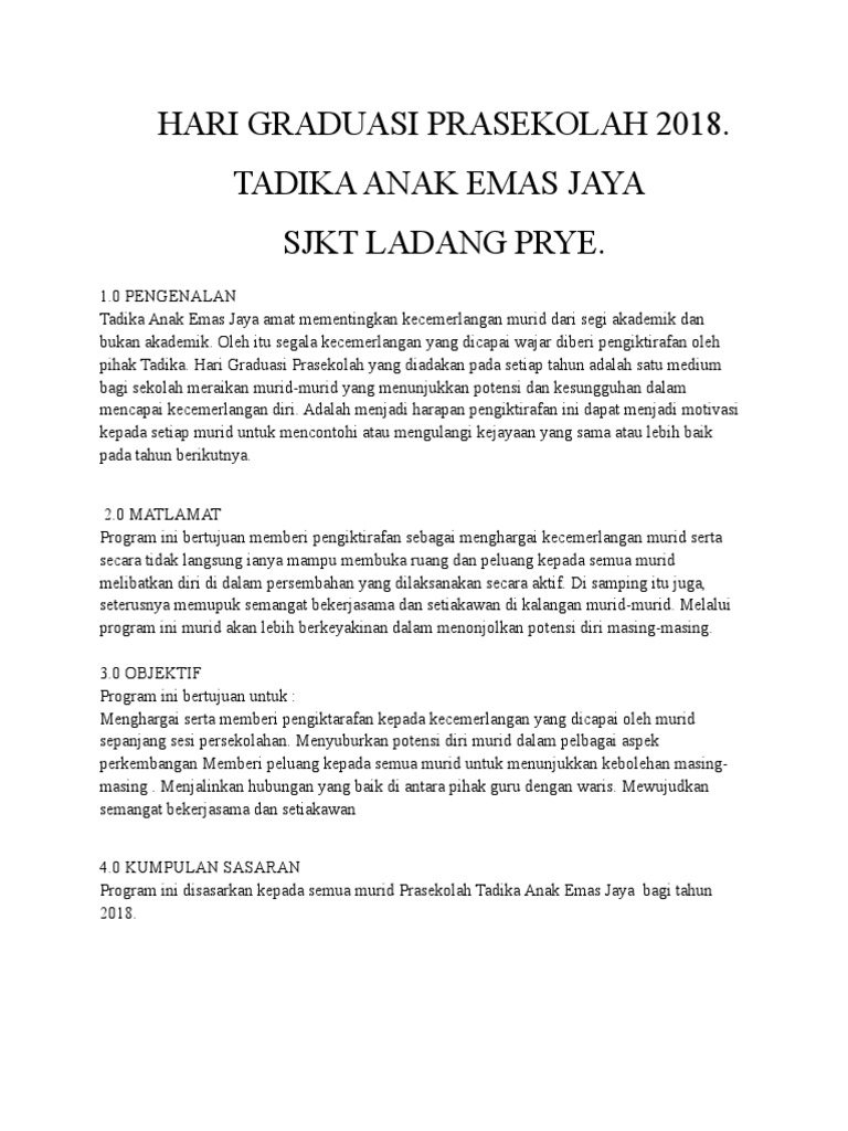 Kertas Kerja Majlis Hari Graduasi Prasekolah 2017 Pdf